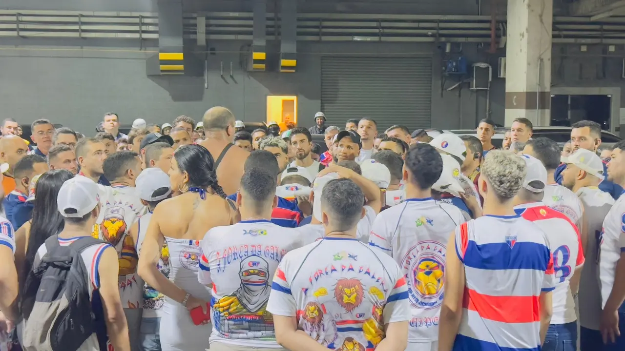 Diretoria e jogadores do Fortaleza conversam com torcedores que protestavam após eliminação