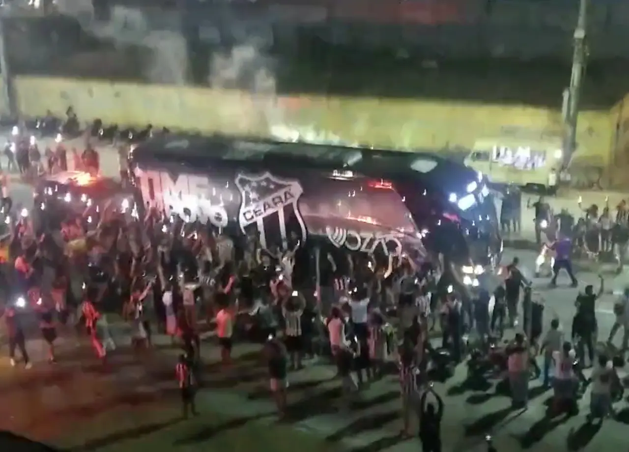 O Ceará encara o Fluminense sem a presença da torcida em momento decisivo do Brasileirão. No entanto, os Alvinegros compareceram para receber e apoiar o time na chegada a Arena Castelão, na noite desta segunda feira (31).