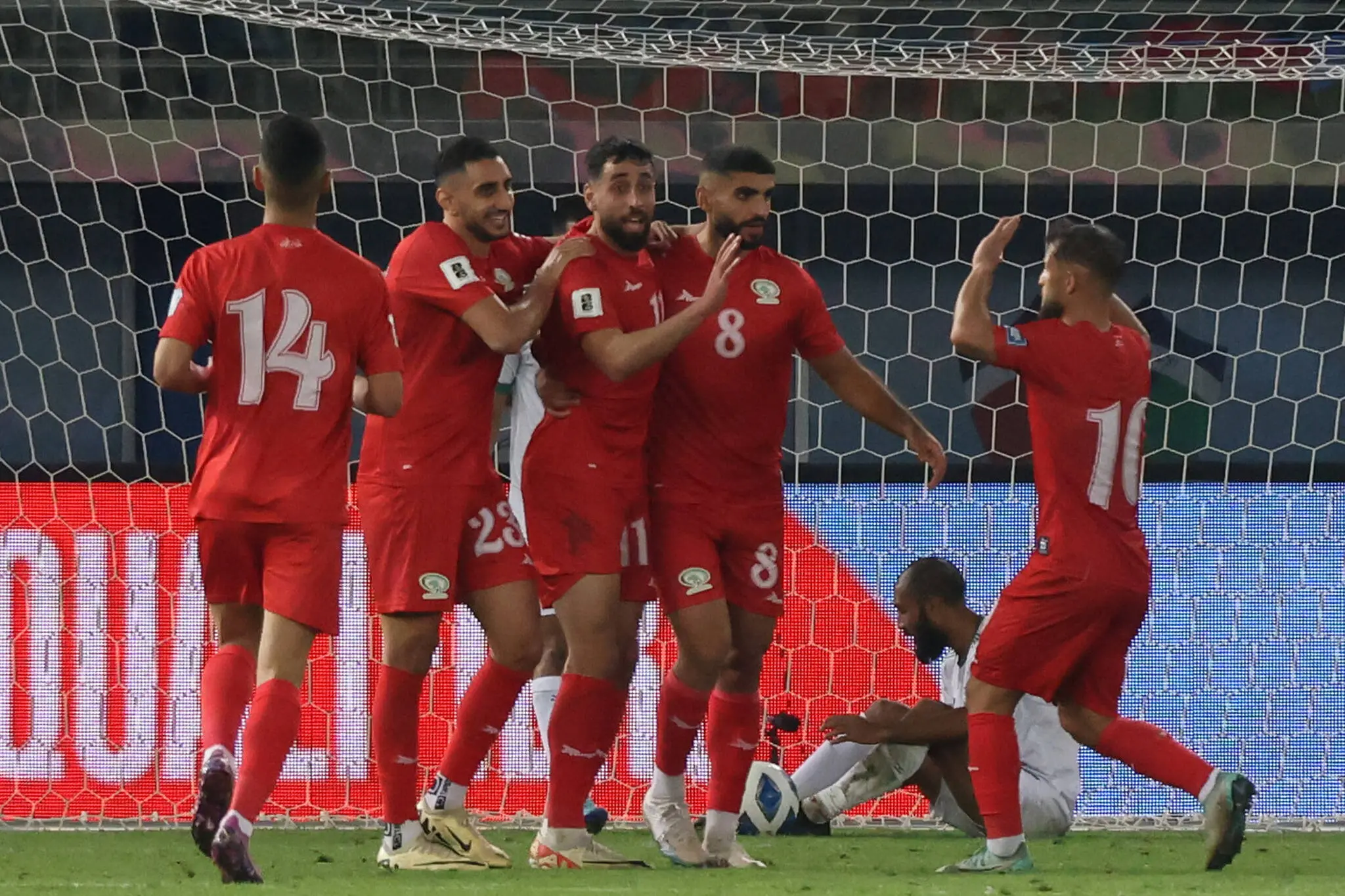 No meio do cenário da guerra de Israel com o Hamas, em seu oitavo mês, a Palestina tenta chegar à Copa do Mundo. "O que não mata o torna mais forte", disse o meia palestino Mohammed Rashid "Estamos aqui por uma causa e um objetivo. Quem está no time tem que atuar. Não há outra maneira de fazer isso."