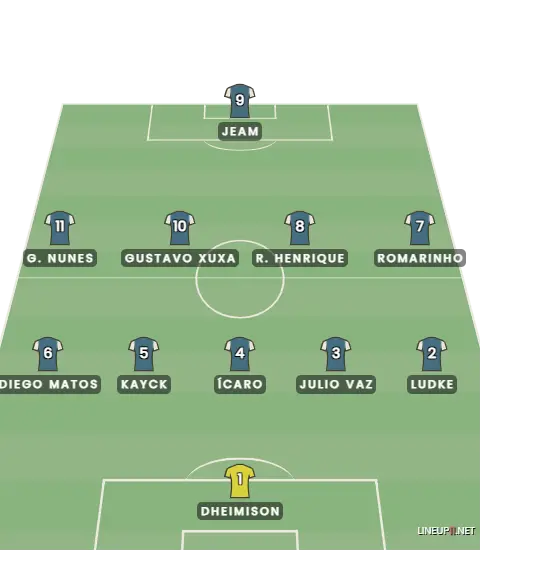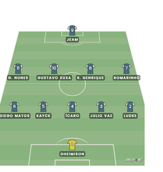 Os laterais Ludke e Diego Matos são mais defensivos, com Rodrigo Henrique e Guilherme Nunes sendo os volantes que protegem a defesa e saem para o jogo.