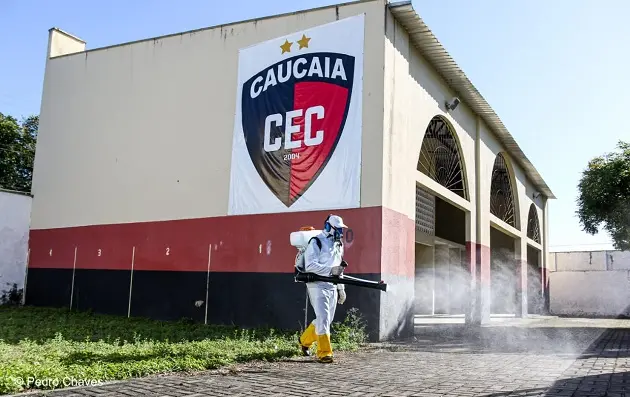 Seguindo o protocolo de retomada aos treinos do futebol cearense, a Federação Cearense de Futebol (FCF) realizou sanitização do Estádio Raimundão, local de treinos e jogos do Caucaia, na Região Metropolitana de Fortaleza. Uma empresa contratada pela FCF realizou higienização do campo, bancos de reservas, vestiários e demais dependências do estádio.