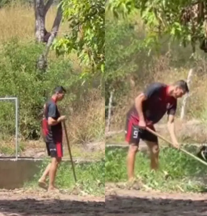 Ex-Flamengo, Ronaldo Angelim trabalha com enxada para construir campo do time feminino; veja vídeo
