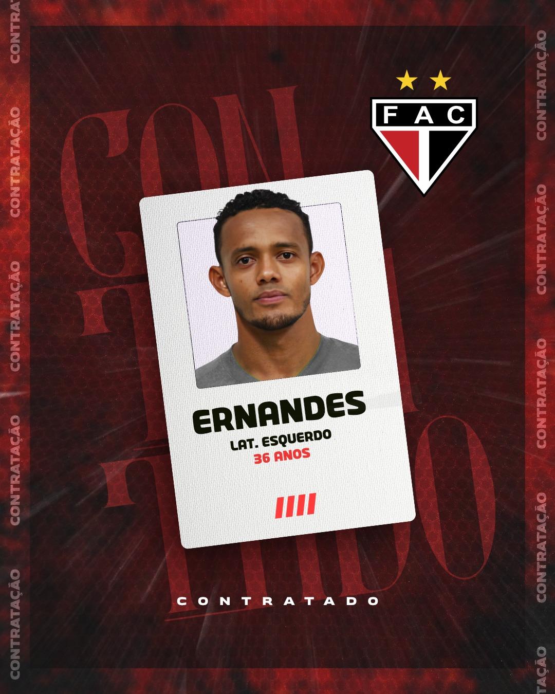 O jogador tem passagens por clubes como Ceará, Vitória, Atlético-GO, América-MG, Goiás, Ponte Preta e CSA, onde encerrou as últimas três temporadas. Na rede social oficial do clube, Ernandes já cumprimentou a torcida Coral e agradeceu o retorno ao time da Barra.