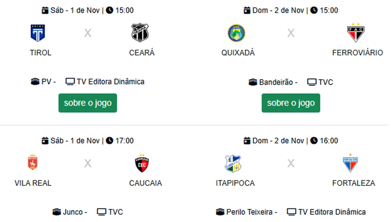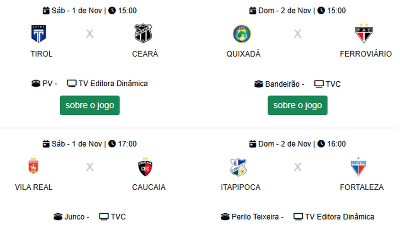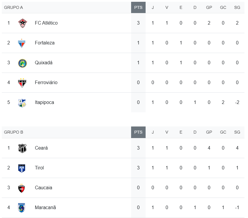 Ceará e Fortaleza, que jogam com suas equipes Sub-20, também entram em campo no fim de semana. Pela 2ª rodada, o Vovô enfrenta o Tirol no sábado e o Leão visita o Itapipoca no domingo.