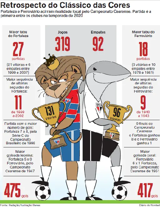 O Clássico das Cores carrega muitas histórias no Campeonato Cearense. O peso da camisa coral contra o manto tricolor entra em disputa novamente nesta quarta-feira (04), pela 2ª fase do estadual, no Presidente Vargas. O Diário do Nordeste relembra dois capítulos marcantes das trajetórias de Ferroviário e do Fortaleza, ambos na decisão da competição.