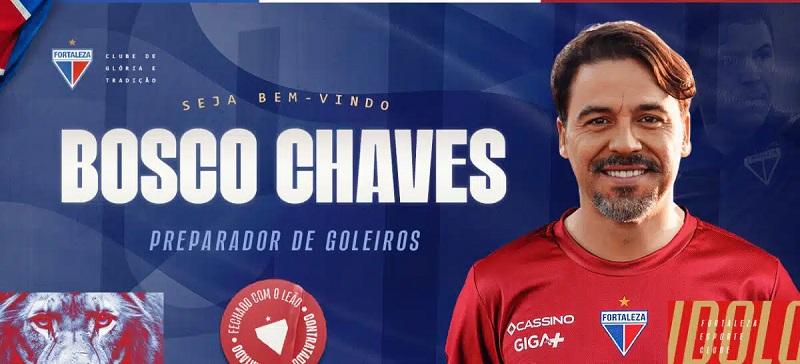 Bosco Chaves é o novo preparador de goleiros do Fortaleza. O clube anunciou a contratação do profissional neste sábado (6). Esta será a segunda passagem dele pelo clube na função. Como jogador, ele teve passagem marcante no Tricolor, quando foi um dos destaques da equipe na campanha do acesso em 2004.