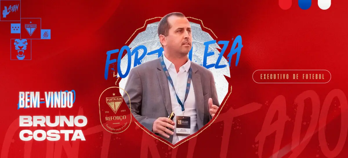 O Fortaleza anunciou nesta segunda-feira (11), a contratação de Bruno Costa para o cargo Executivo de Futebol. Com currículo internacional e passagem pela CBF, Bruno chega para reforçar o Departamento de Futebol do Leão do Pici.