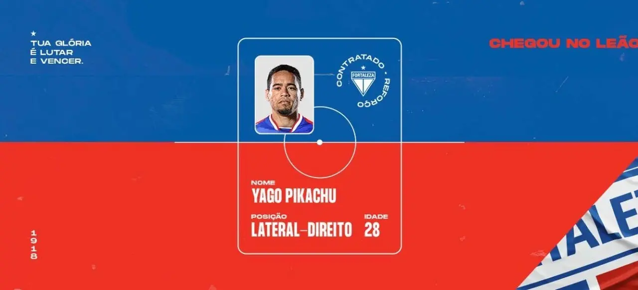 O Fortaleza anunciou a contratação do lateral-direito Yago Pikachu, atleta que atuou no Vasco até a temporada passada. O jogador acertou em definitivo com o Leão do Pici até dezembro de 2022.