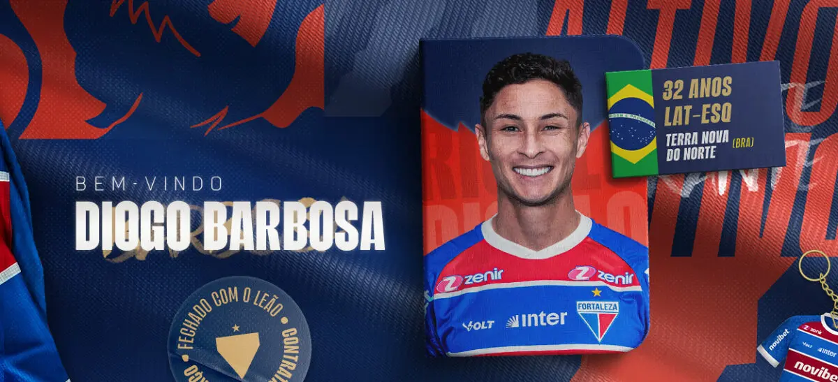 O Fortaleza anunciou a contratação do lateral-esquerdo Diogo Barbosa, ex-Fluminense. O atleta de 32 anos assina contrato em definitivo até o fim de 2026, com opção de renovação por mais uma temporada. O jogador estava livre no mercado após encerrar vínculo com o time carioca, onde foi titular na reta final da Série A do Brasileiro.