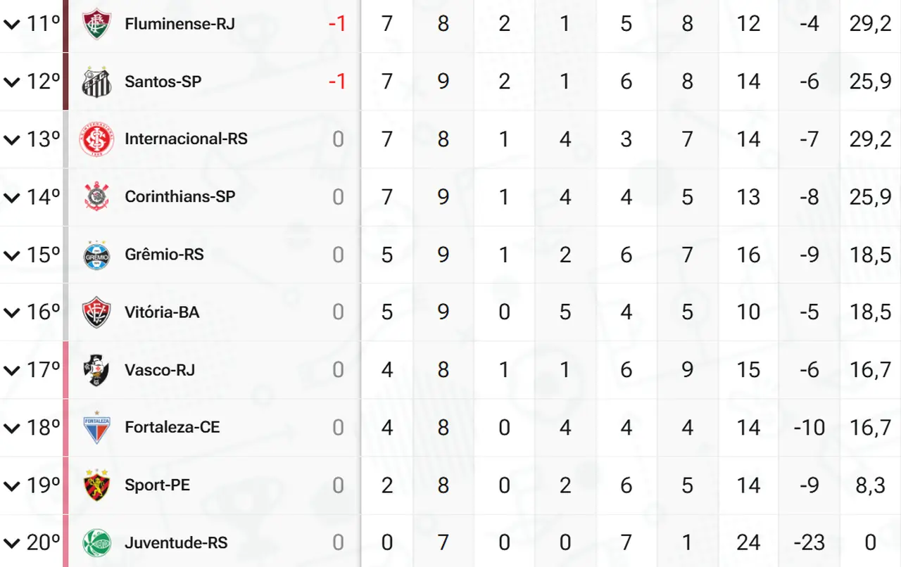 Além do Leão, Juventude, Sport e Vitória, estão no incômodo jejum. Deles, apenas o time baiano não está no Z4, mas próximo, em 15º.