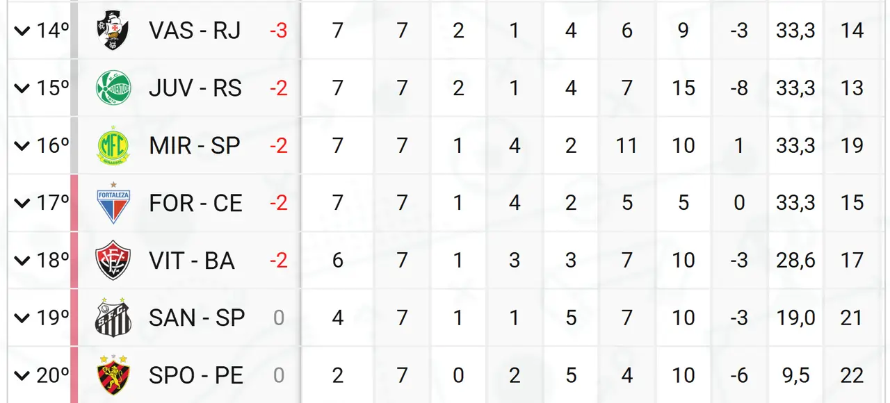 Fortaleza entra no Z4 da Série A após complemento da 7ª rodada