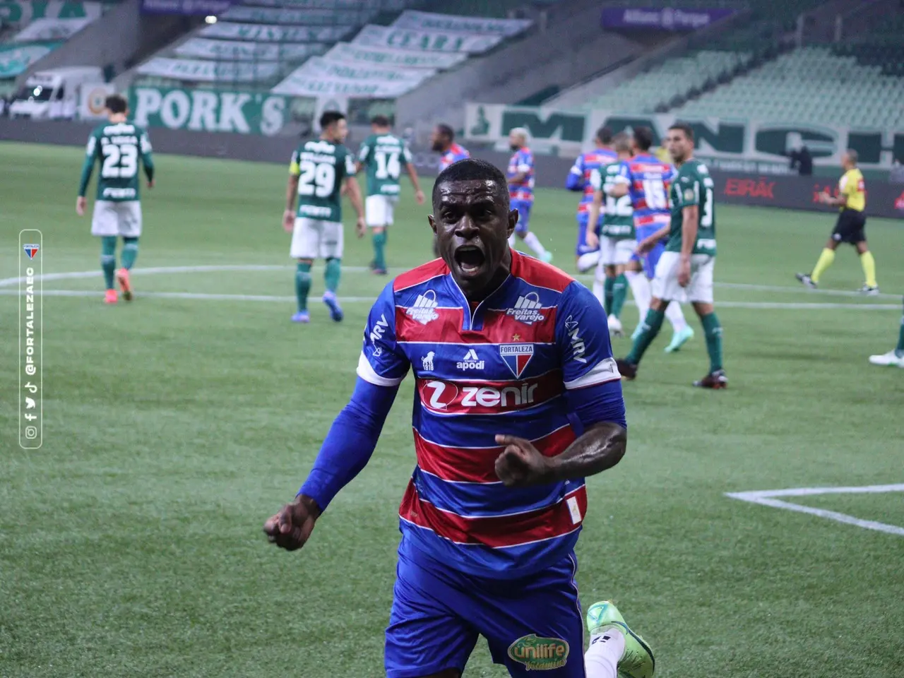 O Fortaleza conquistou uma grande vitória na noite deste sábado pela Série A do Campeonato Brasileiro. O Tricolor de Aço bateu o líder Palmeiras por 3 a 2 no Allianz Parque, em São Paulo (SP), com um gol aos 49 minutos do 2º tempo com Igor Torres.