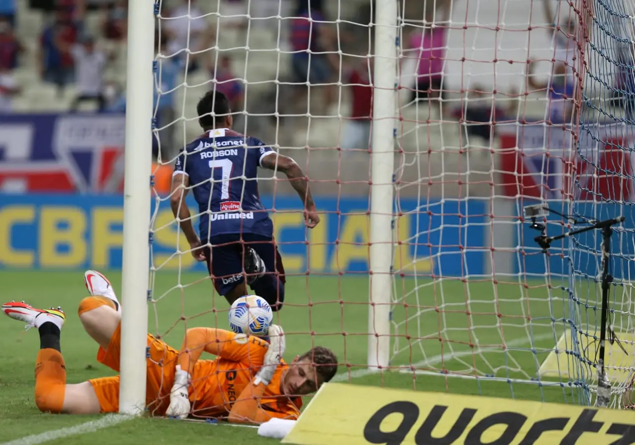 Sem tantas chances claras durante o 2° tempo, a equipe de Juan Pablo Vojvoda aproveitou a única que teve: Robson recebeu cruzamento de Lucas Limas, aos 15 minutos, e cabeceou sem chances para Bento, marcando o 3° do Fortaleza na partida.