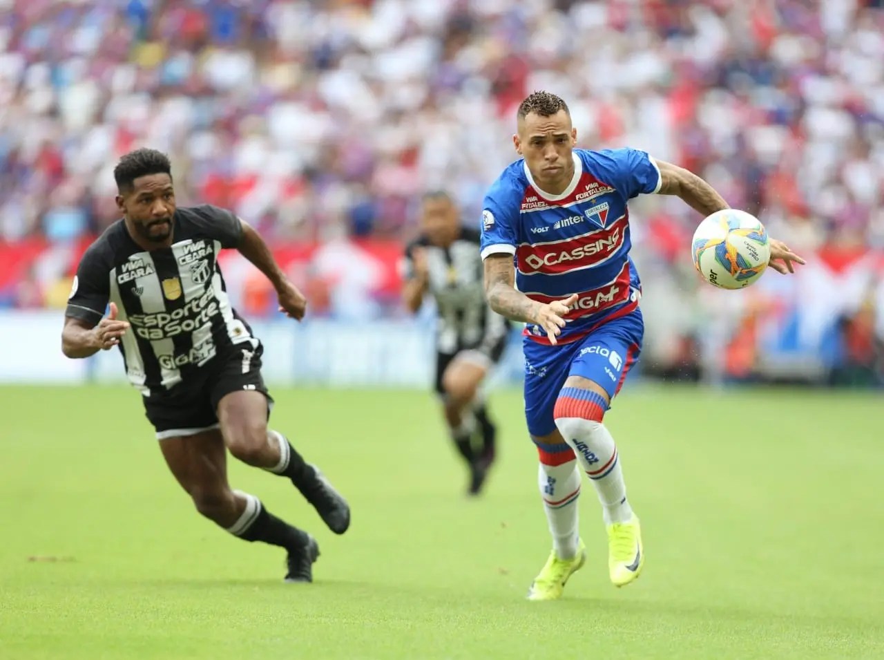 Enquanto o Ceará tentava sair nos contra-ataques, o Fortaleza buscava valorizar a posse da bola e pressionar.