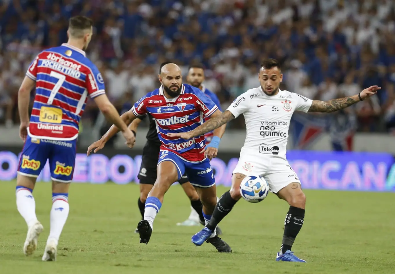 O cenário da partida permaneceu assim até o final do primeiro tempo, com o Fortaleza pressionando em busca do gol e o Corinthians recuado, apostando no contra-ataque em velocidade para surpreender o mandante. O jogo foi para o intervalo empatado em 0 a 0.