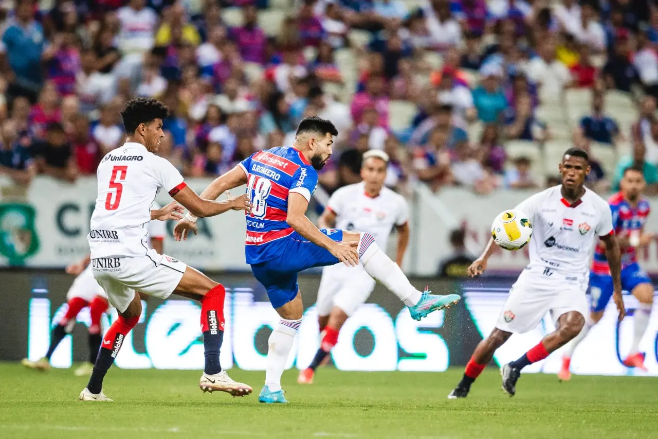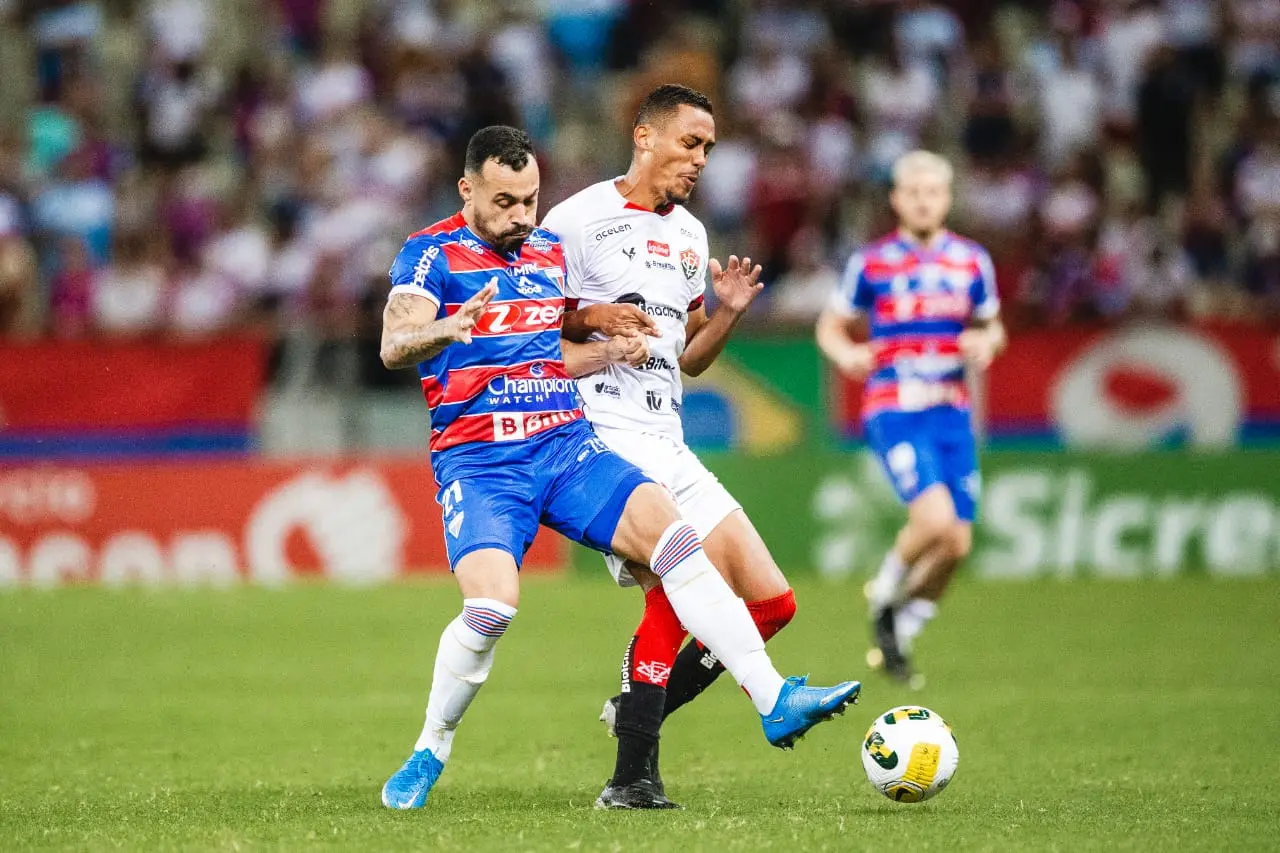 A equipe de Vojvoda não enfrentou dificuldades para construir vantagem diante do Vitória-BA. Com volume de jogo, preenchendo o setor ofensivo com quase todos os atletas, o Fortaleza conseguiu criar boas oportunidades para abrir o placar. Moisés, Jussa e Ceballos finalizaram, mas não conseguiram balançar as redes do goleiro Lucas Arcanjo.