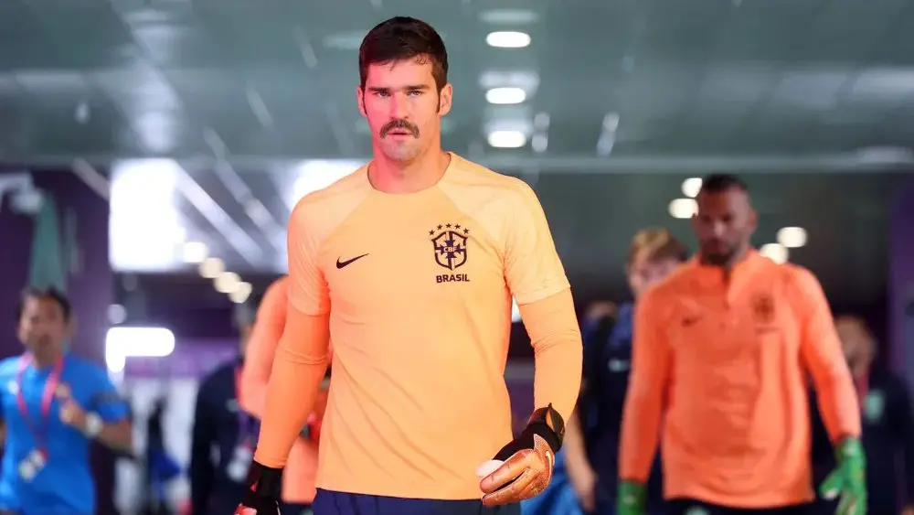 Alisson de bigode chama atenção em estreia do Brasil e faz parte de campanha; entenda