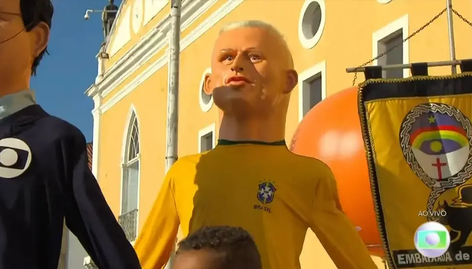 A festa no Recife contava com bonecos representando os jogadores da Seleção Brasileira. No Twitter, a aparência do boneco de Richarlison chamou atenção.