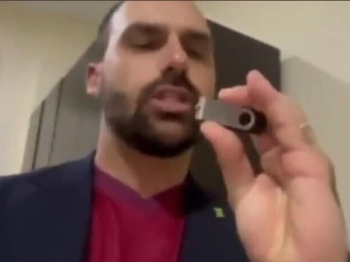 Depois de ser visto nas arquibancadas durante o jogo da seleção brasileira contra a seleção da Suíça, nesta segunda-feira (28), no Catar, o deputado federal Eduardo Bolsonaro (PL-SP) alegou que foi ao país-sede da Copa do Mundo para entregar pendrives sobre "a situação do Brasil". A informação está no G1.