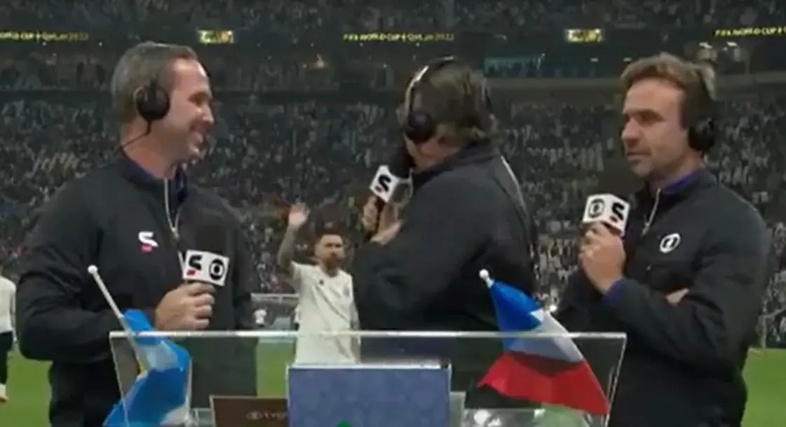 Messi acena para Galvão durante transmissão da final da Copa do Mundo