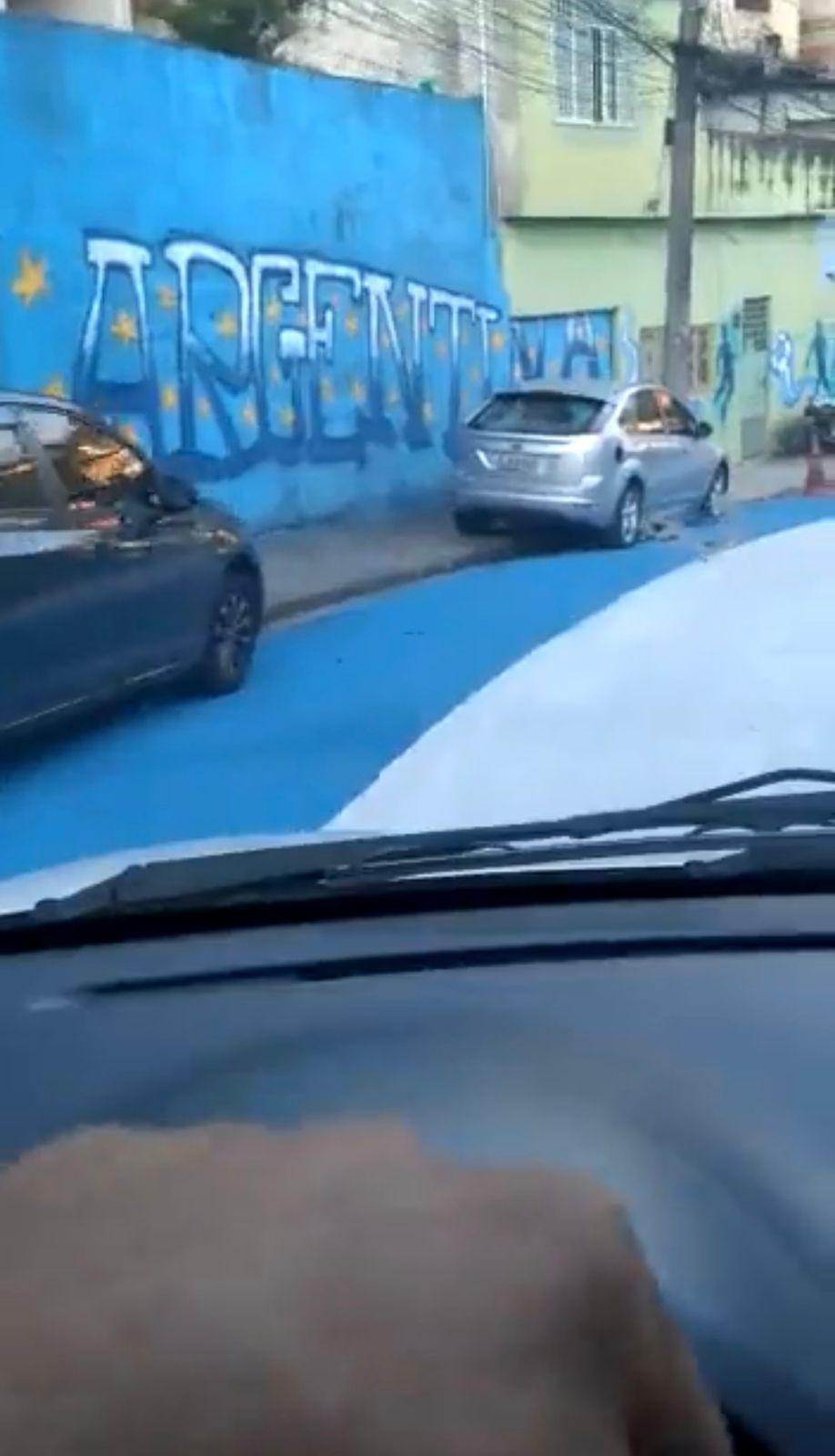 Os moradores do Morro do Dendê, na Ilha do Governador, decidiram entrar no clima da Copa de uma forma inusitada. Uma das ruas da comunidade foram pintadas e decoradas com as cores da Seleção Argentina, maior rival histórica do Brasil.