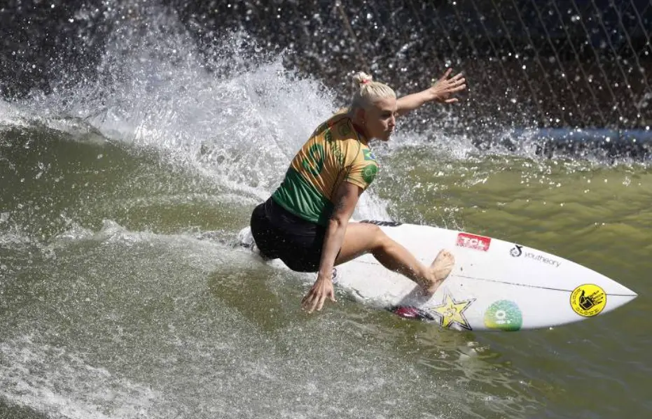 Na disputa entre as mulheres, a brasileira Tati Weston-Webb fez a melhor apresentação da primeira bateria feminina. Ela terminou com 14,83 pontos e segue na busca de uma das quatro vagas nas semifinais, que serão realizadas neste domingo.