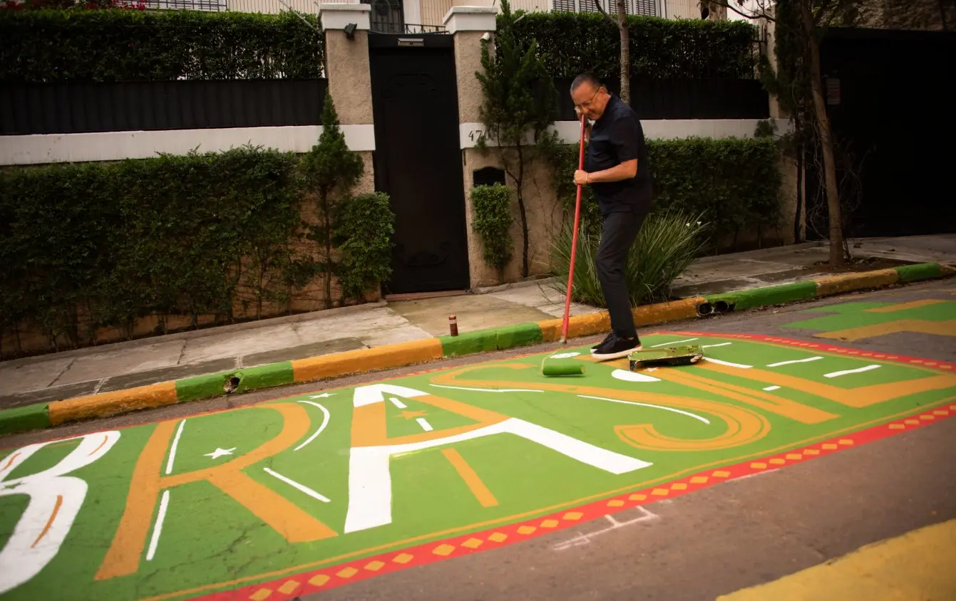 O narrador e apresentador Galvão Bueno, de 72 anos, está em contagem regressiva para a Copa do Mundo do Catar. Na esperança do hexacampeonato da Seleção Brasileira, Galvão pintou a rua de casa, em São Paulo, com as cores do Brasil.