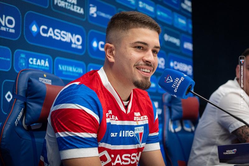 Novo reforço do Fortaleza, Lucas Gazal foi apresentado nesta quinta-feira (11), no Pici. O jogador de 26 anos chegou por empréstimo junto ao Atlético-GO até o fim da temporada de 2025, com opção de compra. O atleta falou das próprias características como atleta, sobre o sistema defensivo do Tricolor e de como tem sido os treinamentos sob comando de Martín Palermo, novo técnico.
