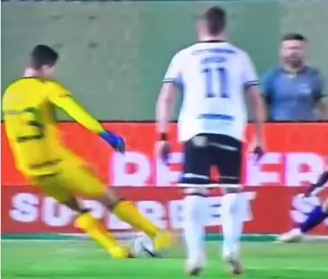 No 1º gol do Goiás, marcado de pênalti pelo goleiro, torcedores do Ceará compartilharam vídeos da transmissão do Premiere no momento da cobrança, indicando dois toques do goleiro ao chutar.