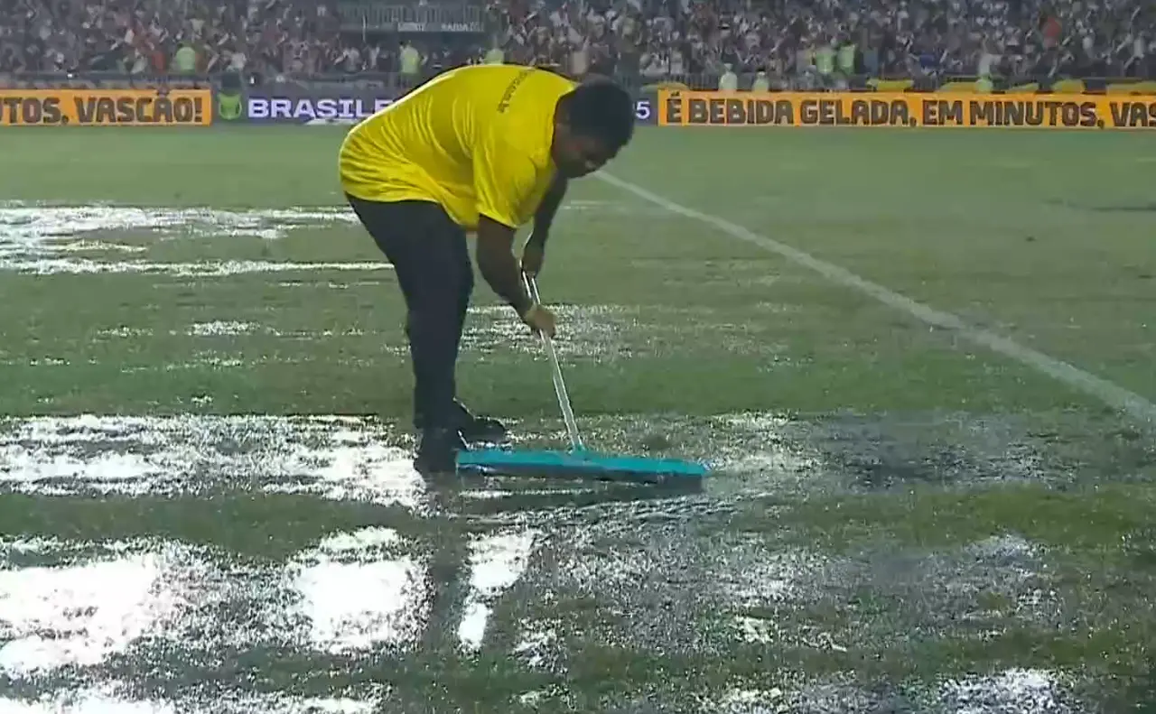 Gramado encharcado faz intervalo de Vasco x Inter durar mais de uma hora