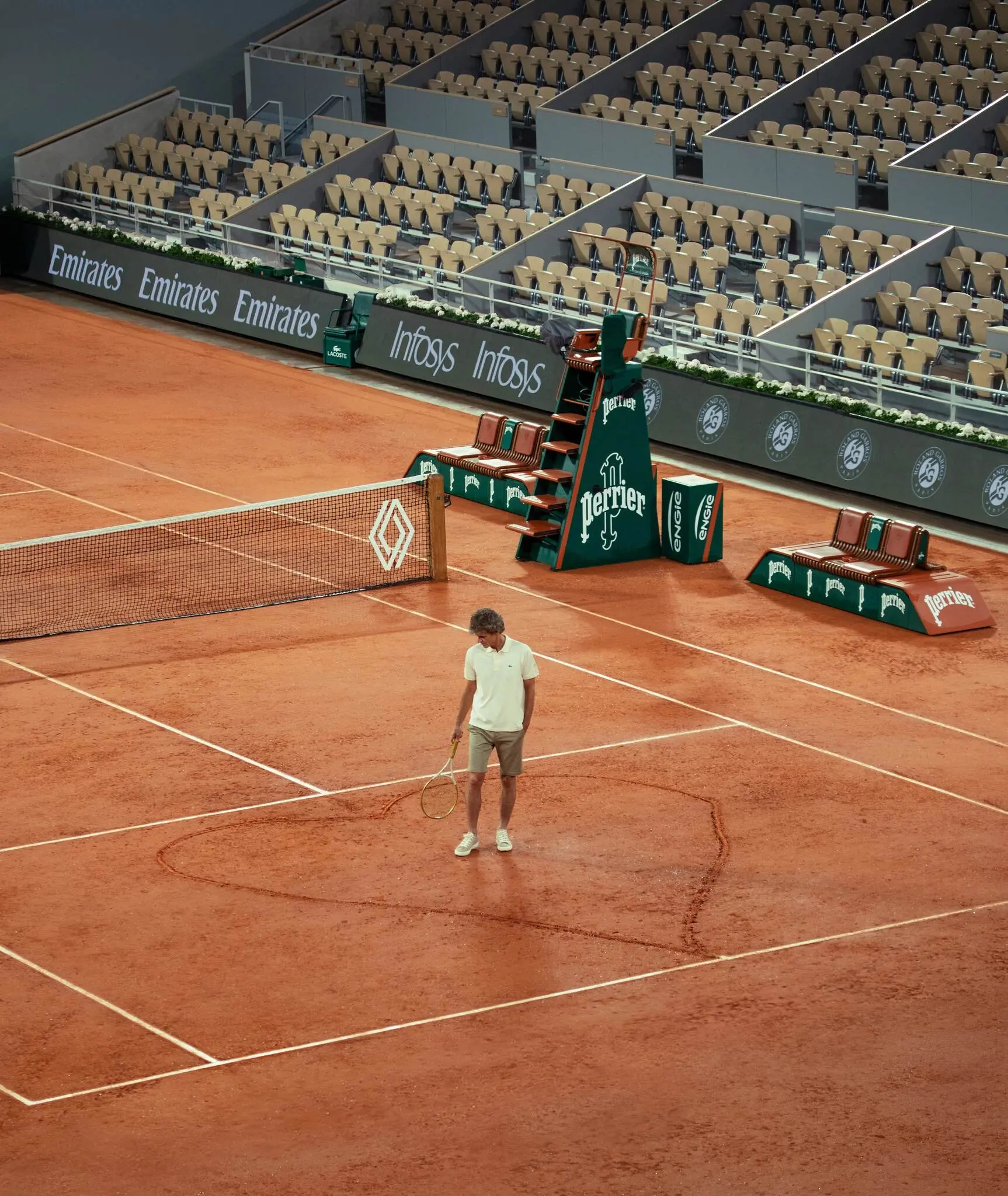 No estande da patrocinadora montado em Roland Garros, o catarinense Gustavo Kuerten ainda reproduziu o desenho do coração em uma réplica em miniatura da Philippe Chatrier, que foi entregue como presente ao presidente da Federação Francesa de Tênis, Gilles Moretton.