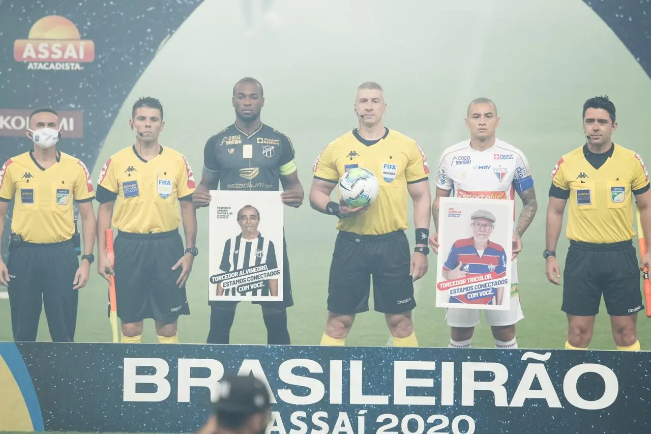 O espetáculo do Clássico-Rei sempre transcende o campo. Em tempos de estádios vazios sem a pandemia, os clubes tentam manter a conexão com os milhares de torcedores, em especial aqueles que venceram a Covid-19, que já levou quase 10 mil vidas no Ceará. Neste domingo (20), durante a entrada dos atletas no gramado, os capitães Luiz Otávio e Wellington Paulista seguravam fotos de torcedores do Vovô e do Leão, respectivamente, que venceram a árdua luta contra o coronavírus.
