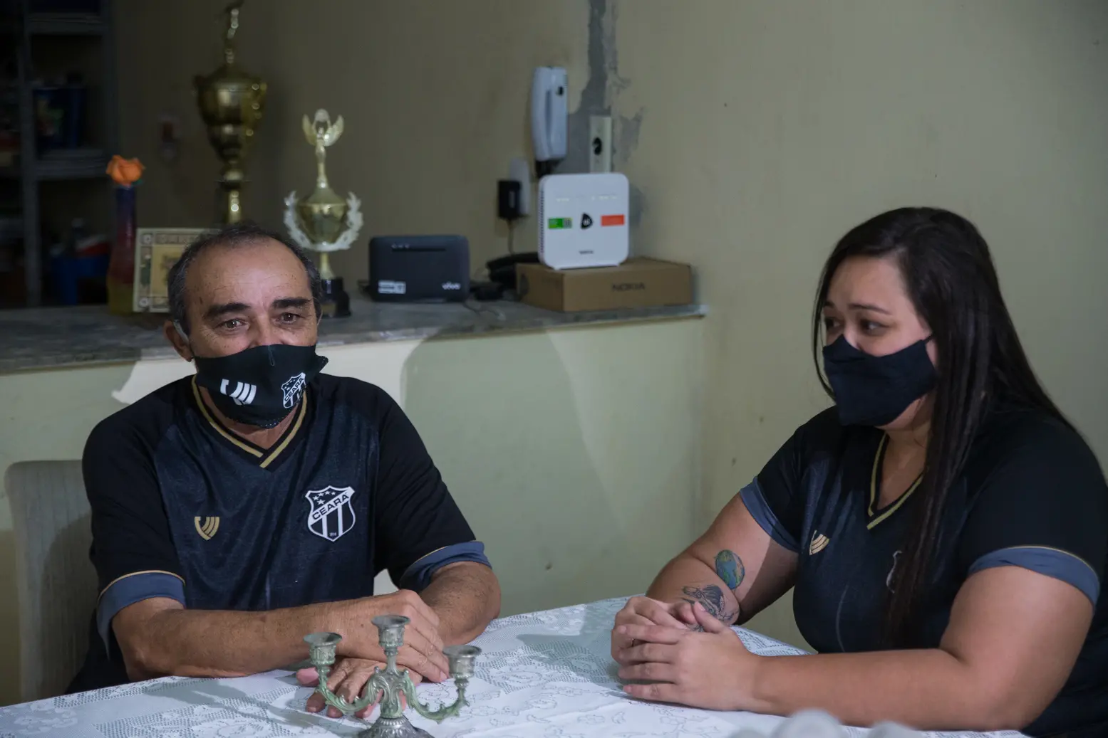 "O pessoal às vezes brinca e eu digo: vou fazer um gol contra hoje", diz o aposentado e torcedor do Tricolor do Pici que contraiu a Covid-19 no começo de novembro. "Moro com minha esposa e um filho. Mantínhamos o isolamento e não tínhamos contato com quase ninguém. Mas às vezes você dá uma escapadinha para o supermercado e deve ter ocorrido, no começo de novembro foi comprovado. Foi muita dor no corpo, diarréia, falta de paladar, cansaço. Minha esposa também foi infectada na mesma época. Passei 21 dias em casa. Hoje tô bem, me comunicando e mantendo sempre a guarda, com álcool em gel e máscara", relatou Luiz à reportagem.
