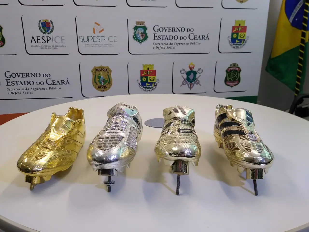 O ex-jogador cearense Mário Jardel agradeceu as forças policiais do Estado pela recuperação de suas chuteiras de ouro, prata e bronze e disse que a operação das autoridades foi cirúrgica. A declaração foi dada na manhã desta sexta-feira (4), durante coletiva de imprensa sobre o caso, na sede da Secretaria de Segurança Pública e Defesa Social (SSPDS).