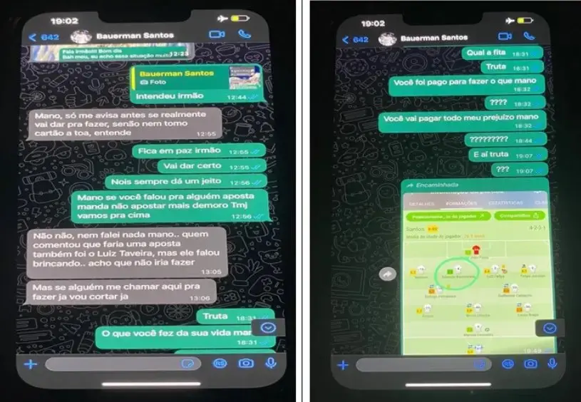 O Santos afirmou que só vai se pronunciar sobre o caso, após ter uma conversa com Bauermann, que deverá ocorrer nesta terça-feira Veja partes da conversa do jogador com o apostador:
