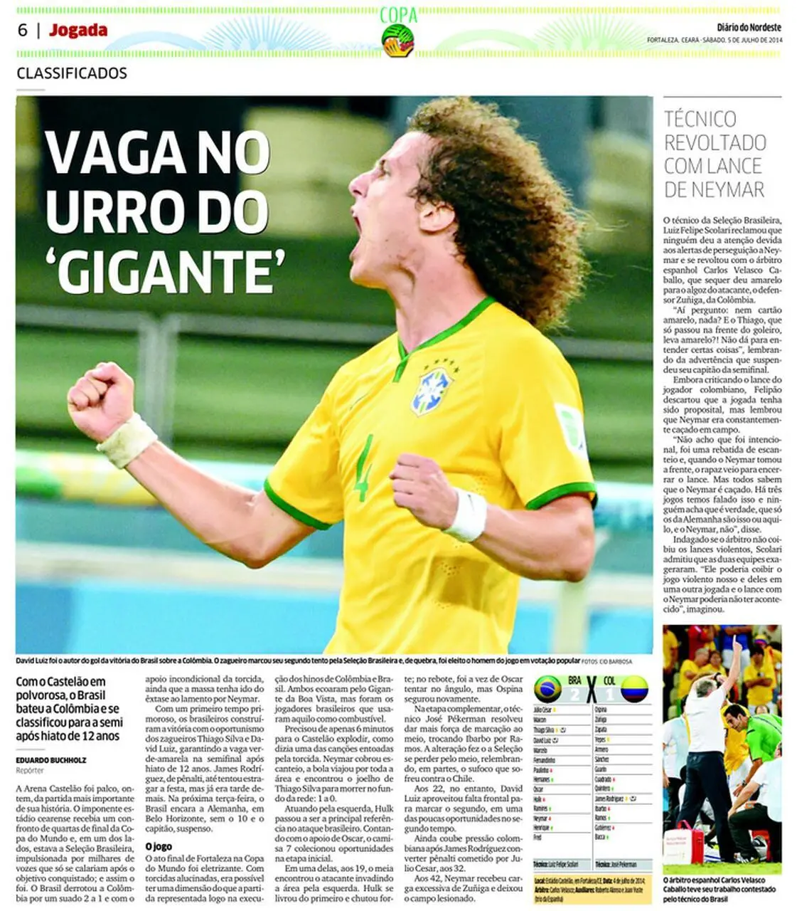 A vitória do Brasil sobre a Colômbia no Castelão rendeu à Seleção a classificação para as semifinais da Copa do Mundo. Aquela foi a última vez em que a Amarelinha saiu vitoriosa de uma partida de quartas de final de Copa. Em 2018 e em 2022, o Brasil foi eliminado justamente nesta fase, para Bélgica e Croácia, respectivamente.