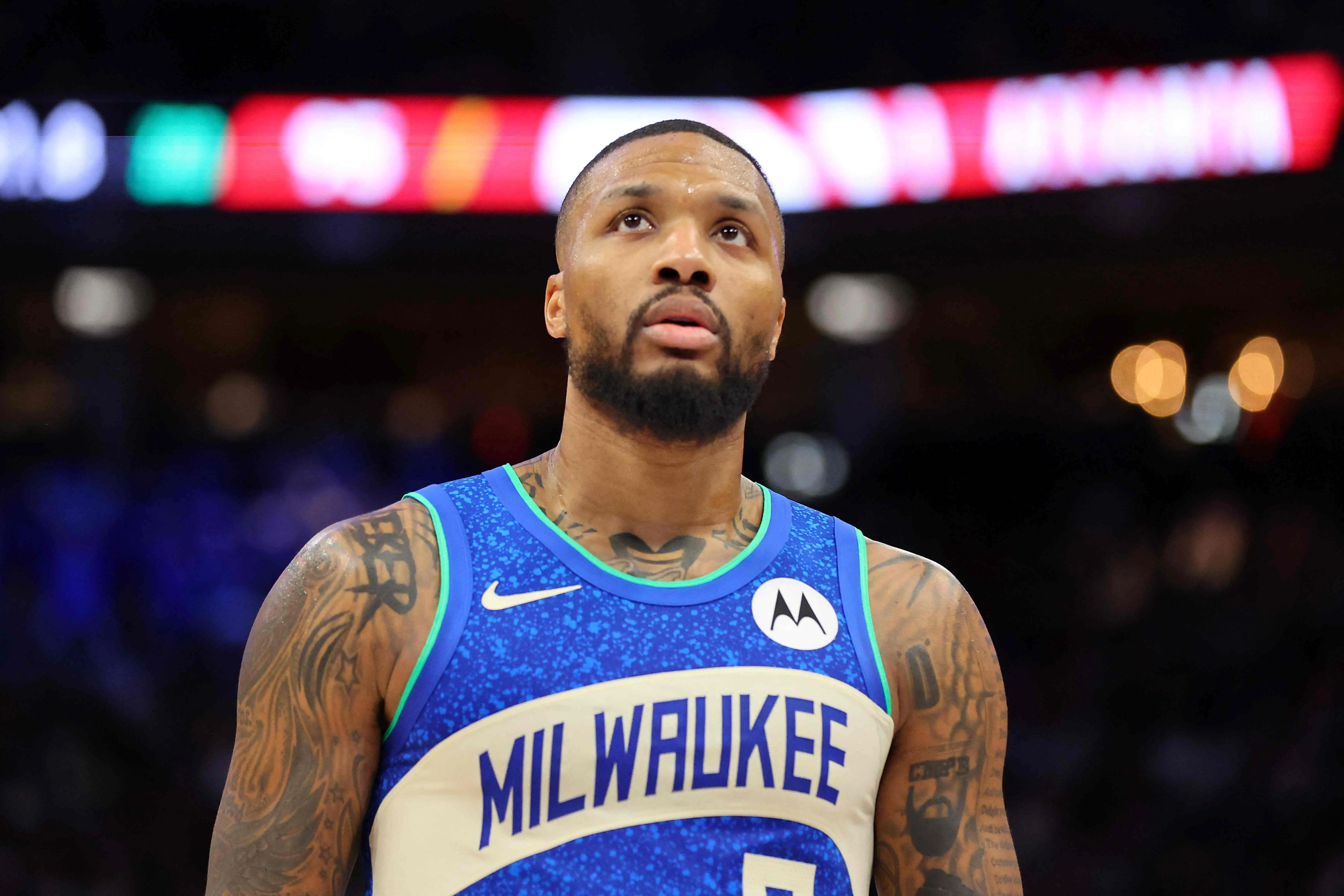 Damian Lillard, jogador do Milwaukee Bucks, durante jogo da NBA