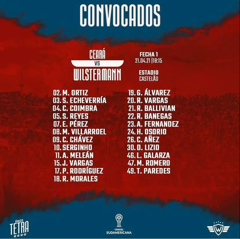 Para o duelo, o treinador relacionou 23 jogadores e o clube divulgou a lista ainda ontem em seu twitter. Os destaques do Jorge Wilstermann são conhecidos do torcedor brasileiro.