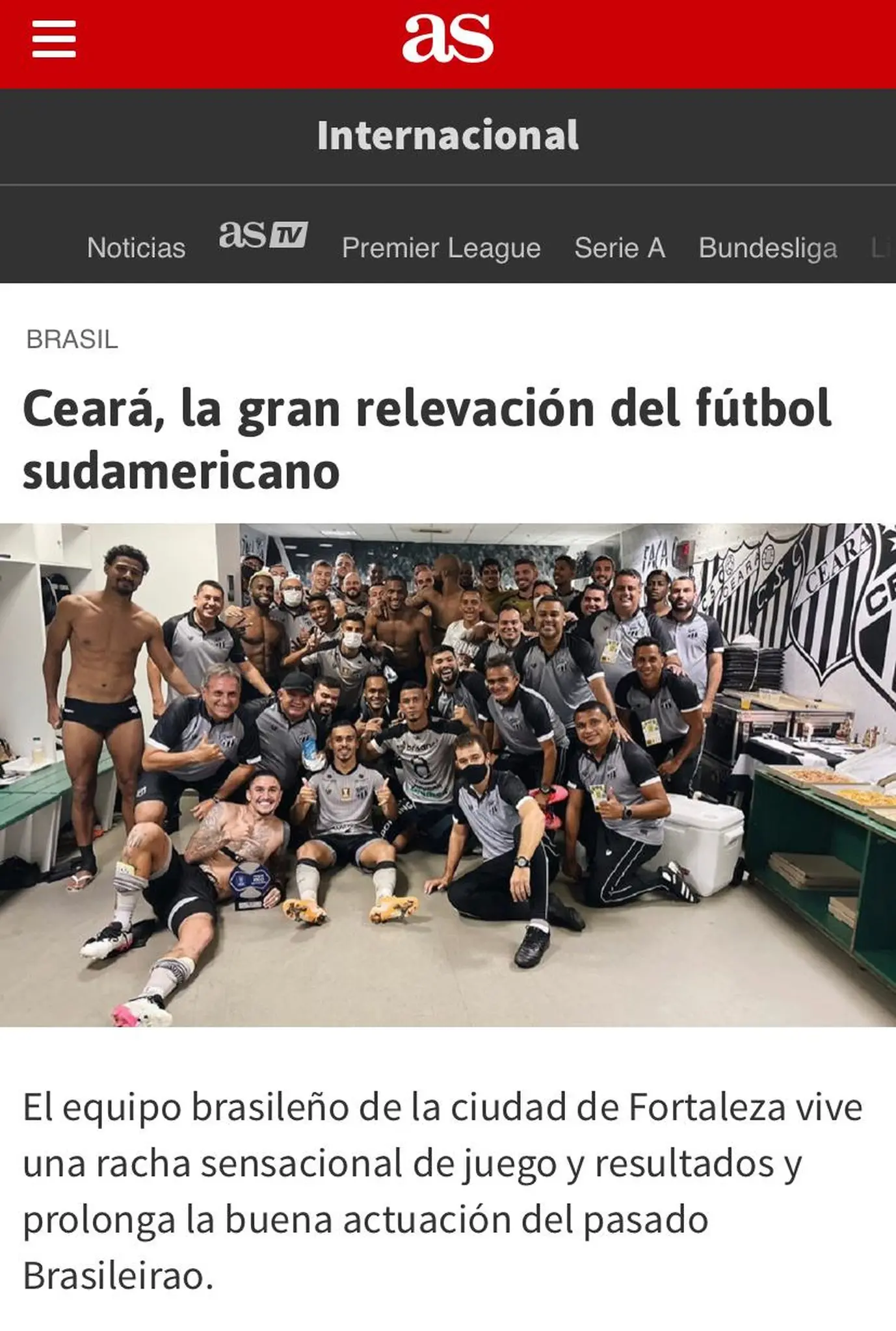 Periódico desportivo AS produziu uma matéria repercutindo o bom momento do Alvinegro de Porangabuçu na atual temporada
