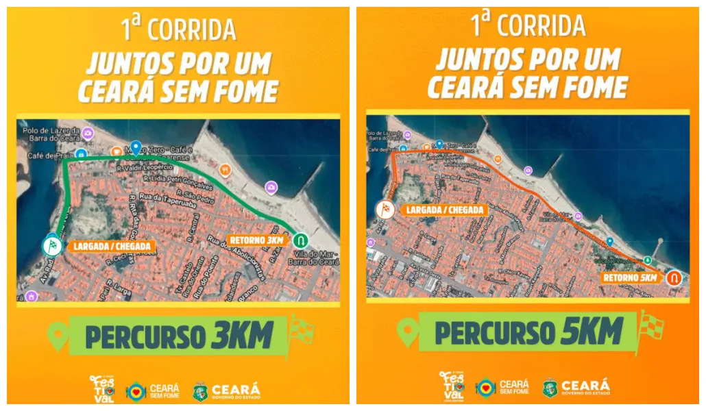 A corrida encerra a programação do 2º Festival Ceará Sem Fome do Governo do Ceará e todo o material arrecadado será destinado às nove entidades credenciadas ao Programa que atuam na região da corrida.