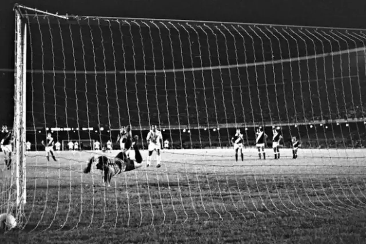 O camisa 10 precisou de três passos, deu a paradinha e com o pé direito colocou a bola com um chute rasteiro no canto esquerdo do goleiro. Andrada ainda conseguiu tocar na bola, mas não evitou o gol mil de Pelé, exatamente aos 34 minutos e 12 segundos.