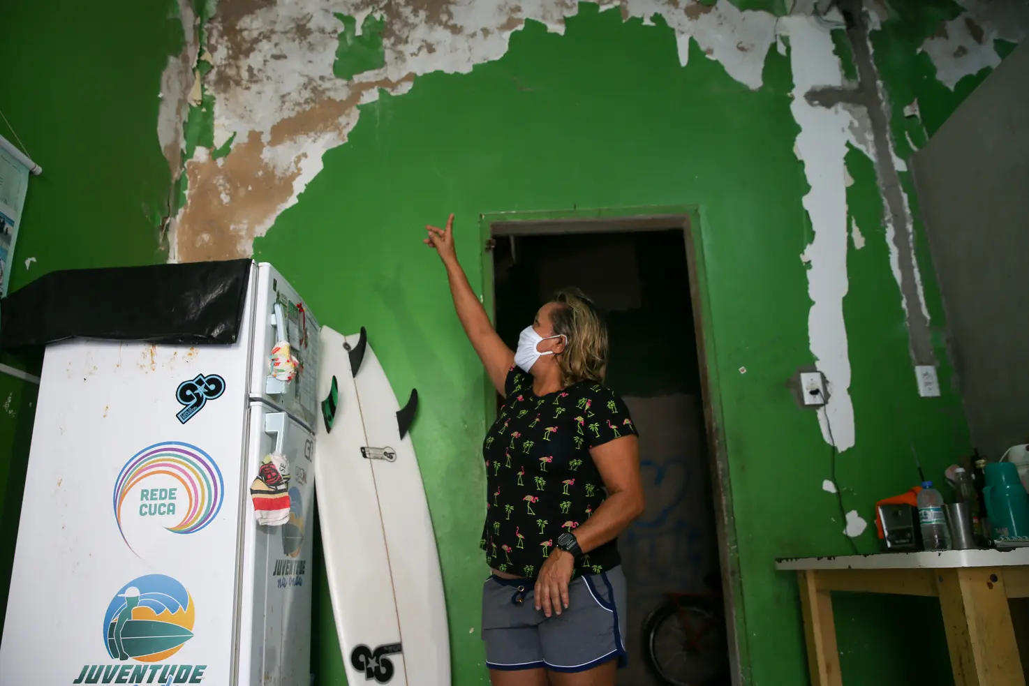 Lenda do surfe, cearense Tita Tavares vive em casa condenada pela Defesa Civil e faz apelo
