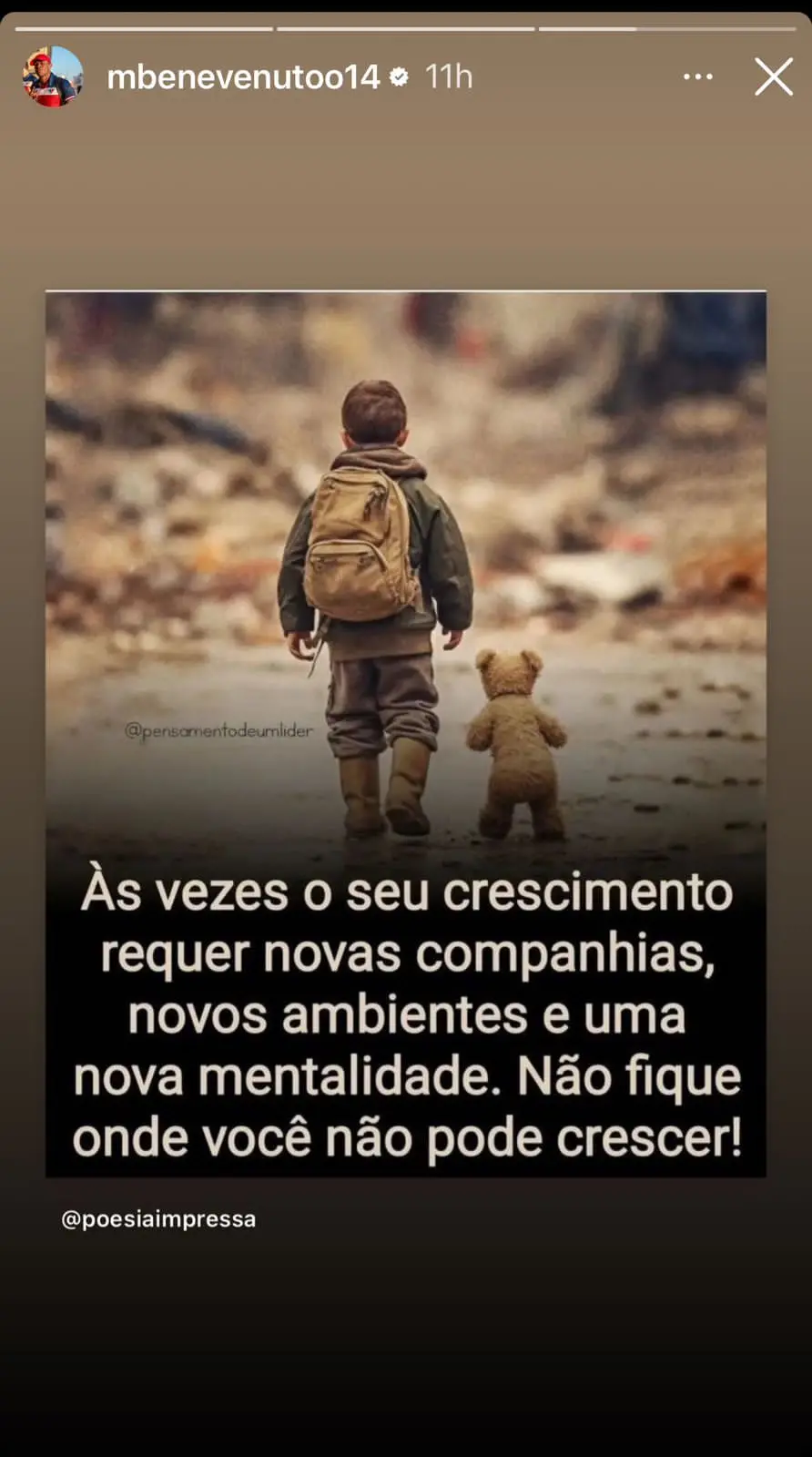 Marcelo Benevenuto compartilha mensagem em rede social sobre 'novos companheiros' e 'novo ambiente'
