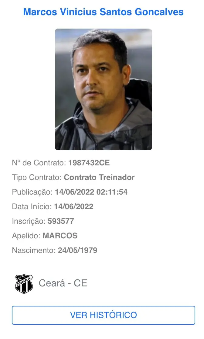 O técnico Marquinhos Santos foi regularizado no BID da CBF nesta terça-feira (14) e estreia no comando do Ceará contra o Atlético-MG nesta quarta-feira (15), em duelo válido pela 12ª rodada da Série A do Campeonato Brasileiro.