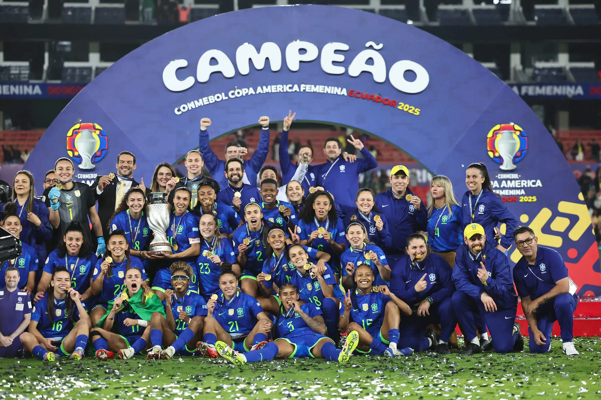 Depois de ficar três vezes atrás no placar, abrir vantagem na prorrogação e ceder o empate em 4 a 4 nos últimos minutos, o Brasil venceu a Colômbia nos pênaltis por 5-4 neste sábado (2), em Quito, e conquistou pela nona vez na história a Copa América feminina.