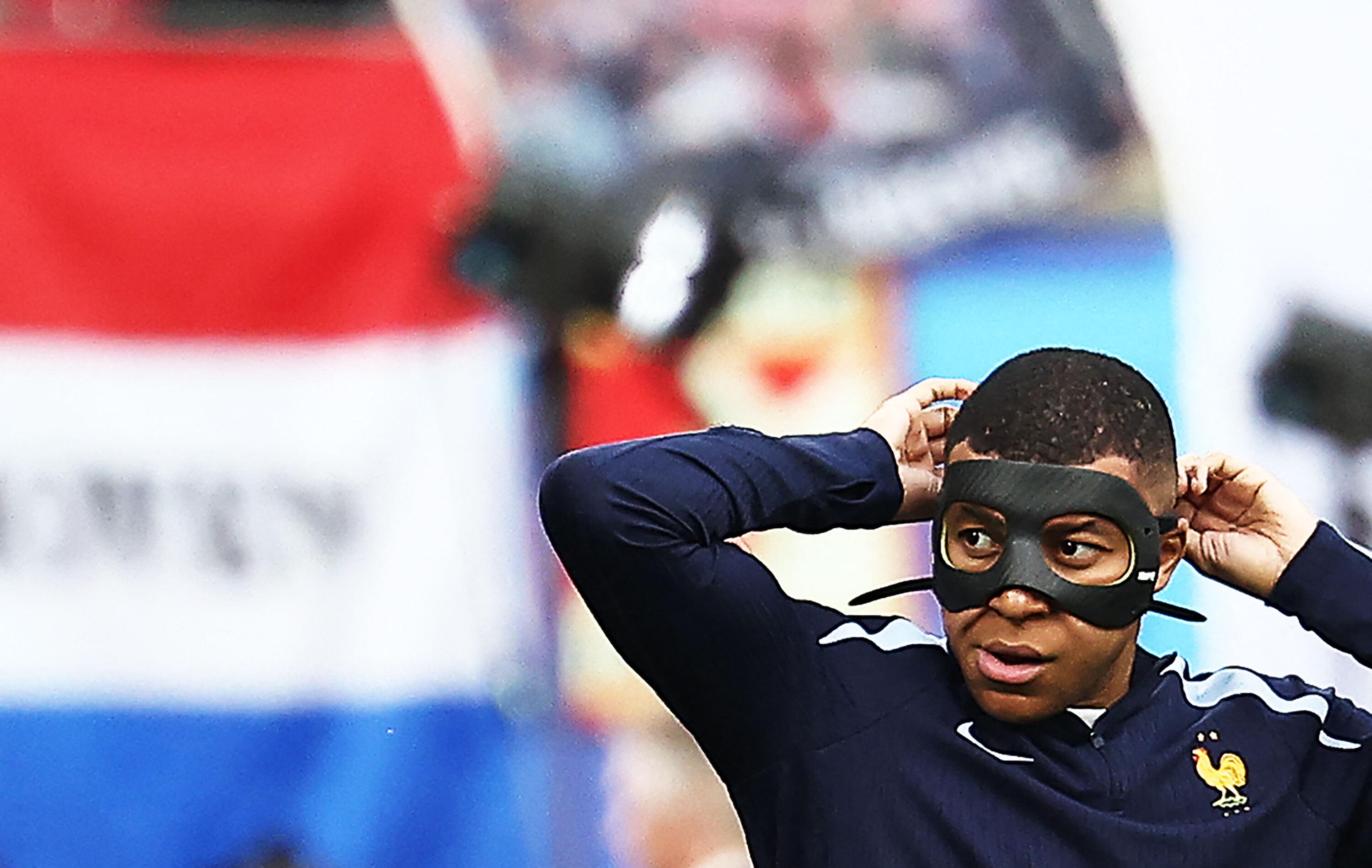 A divulgação da escalação da França que encara a Holanda em Leipzig, nesta sexta-feira (21), pela Eurocopa, confirmou a presença de Mbappé entre os relacionados. Com o nariz fraturado, porém, o astro fica somente no banco de reservas. Caso Didier Deschamps tenha de utilizá-lo, ele entrará com uma máscara totalmente preta.