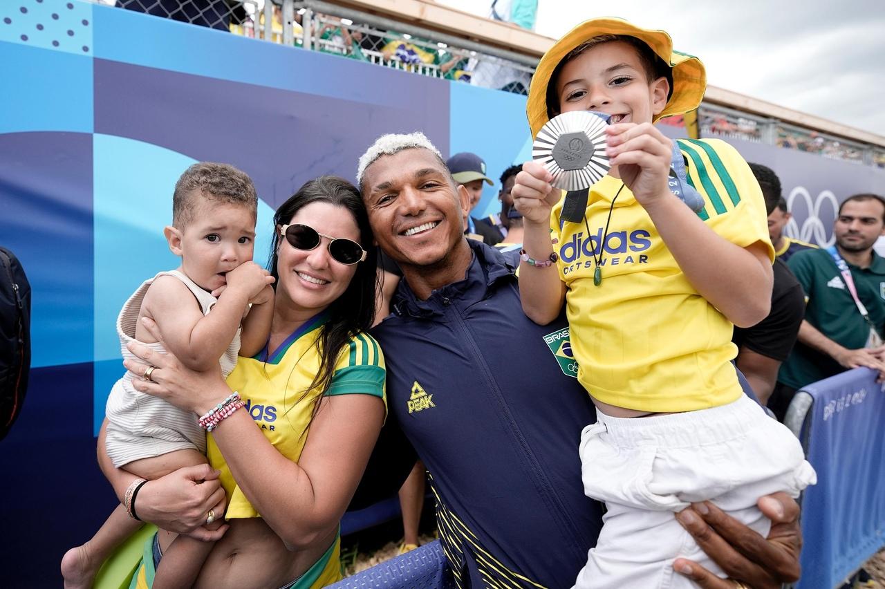 Após uma prova de recuperação emocionante que lhe rendeu a medalha de prata na canoagem C1 1000 metros, o brasileiro Isaquias Queiroz correu para os braços de sua família presente nos Jogos Olímpicos de Paris-2024 para comemorar sua quinta conquista olímpica da carreira. A empolgação foi tanta que o prêmio caiu e sofreu danos.