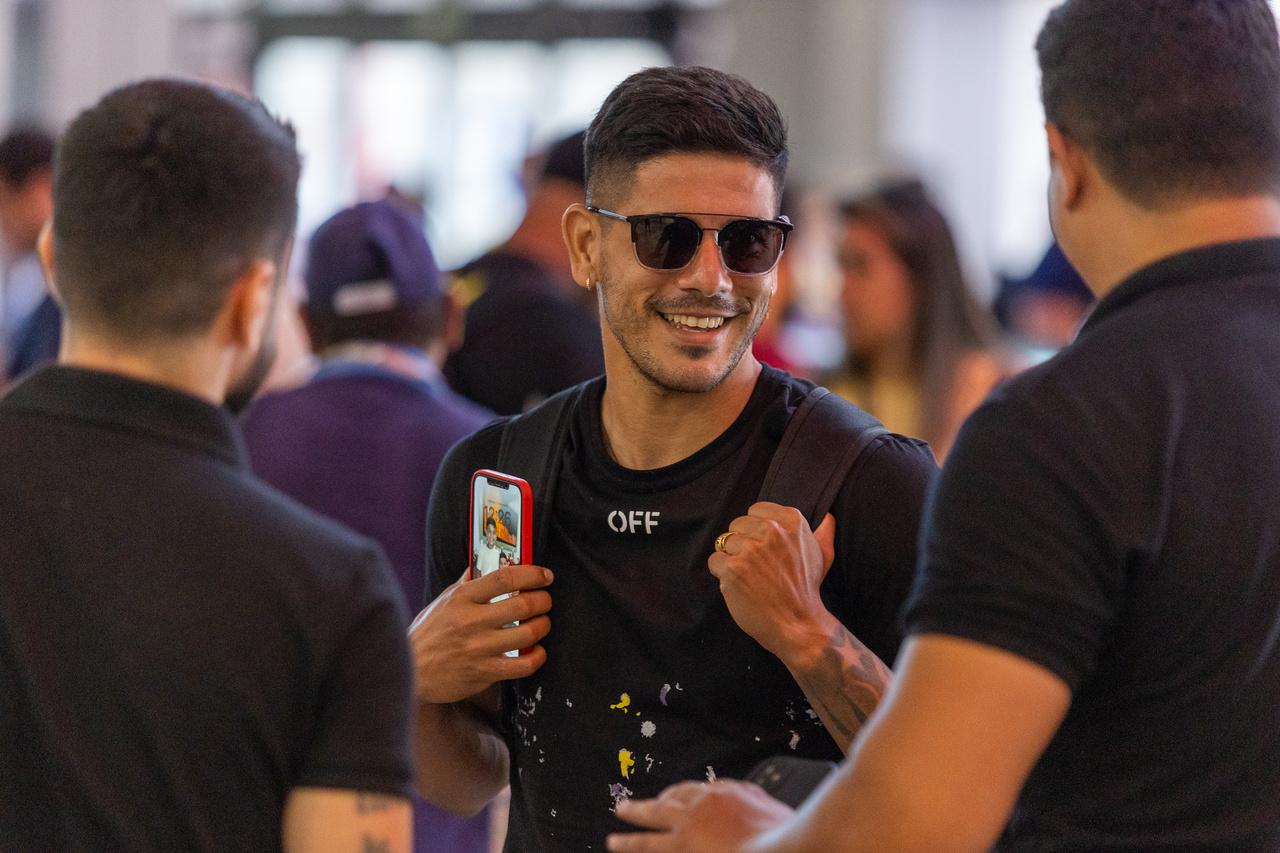 O meia Recalde, uma das principais contratações do Ceará para a temporada, desembarcou em Fortaleza nesta sexta-feira (6). O paraguaio foi recepcionado pelo assessor de futebol do Vovô, Ricardinho.