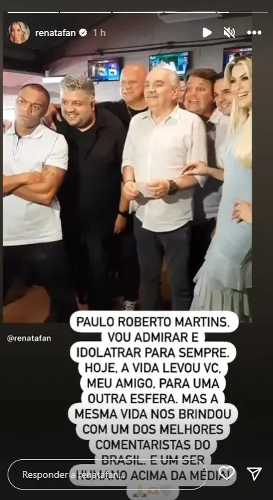 A apresentadora Renata Fan homenageou o comentarista através de suas redes sociais.