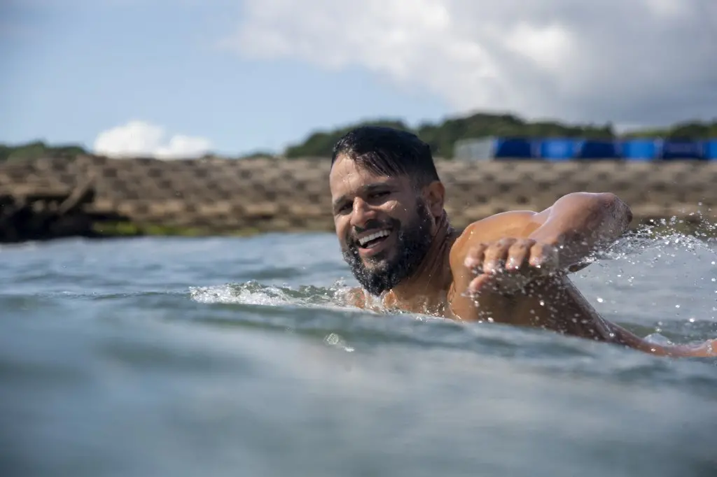 "O mar estava meio difícil, mas treinei bastante e o atleta tem que estar preparado para tudo. A tendência é que o mar melhore um pouco amanhã e eu espero aproveitar da melhor forma".
